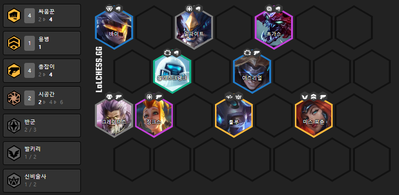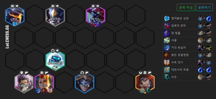 ※ 각 이미지와 배치툴의 출처는 롤체지지 사이트(https://lolchess.gg/?hl=ko-KR)입니다.